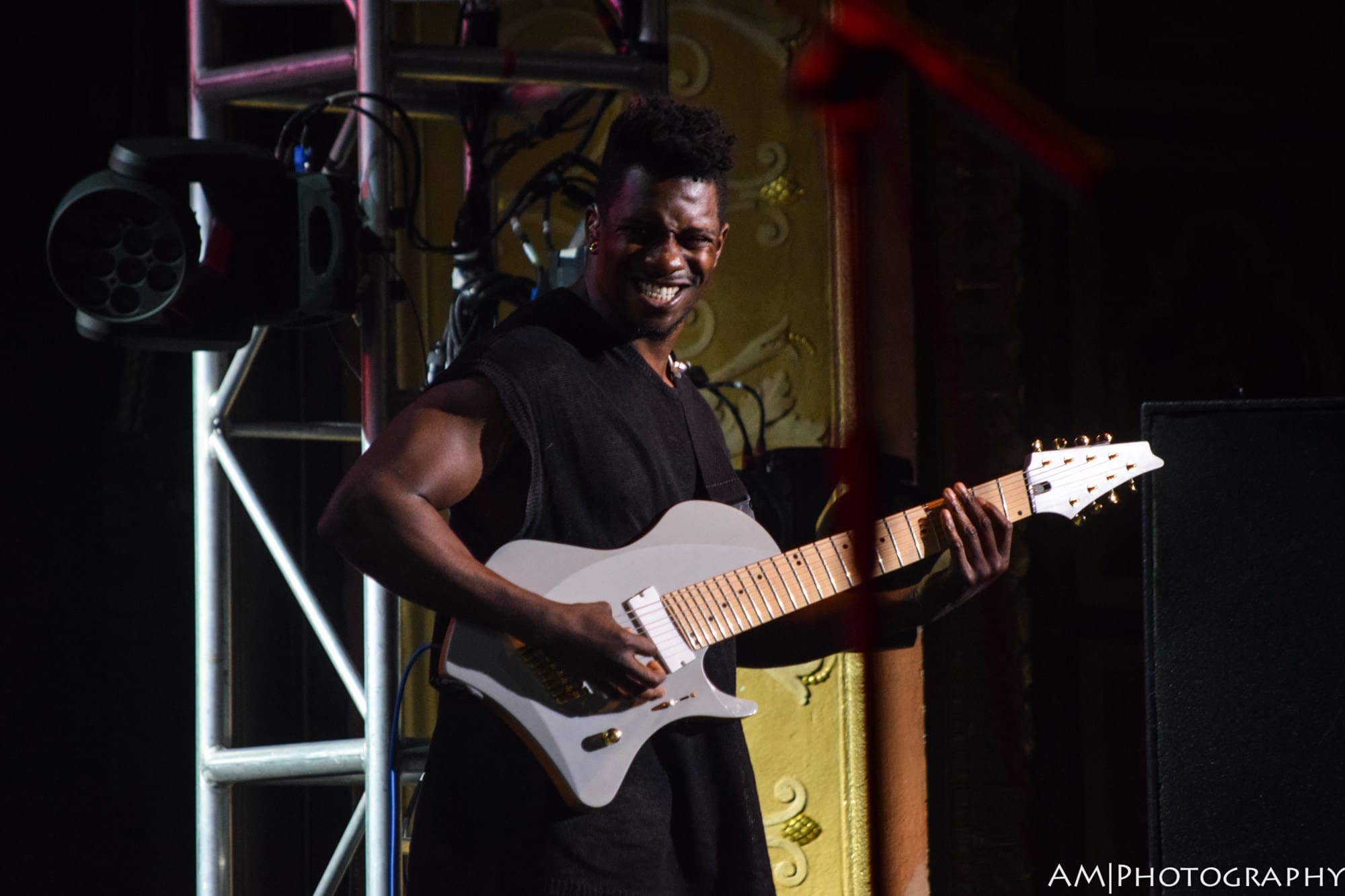 The show opened with all five musicians playing the Boston song “Foreplay” which was an excellent choice considering the many layers that song has. Then Tosin Abasi took the stage. Abasi is from a band called Animals As Leaders, a djent band out of Washington D.C. Tosin is the youngest of the bunch, but he very quickly showed people why he was included on this tour. His lightning fast sweeps, complex and interesting rhythm playing, and his use of odd time signatures are hallmark of his extremely progressive sound. He uses an 8-string guitar, with the two extra string being tuned to lower notes, almost as low as a bass guitar, which lends itself to his percussive guitar sound. He was joined by Nuno Bettencourt for his last song, “Physical Ed”, which seemed to challenge Nuno, even saying at the end “Does Tosin even know where the “1” is in that song?”