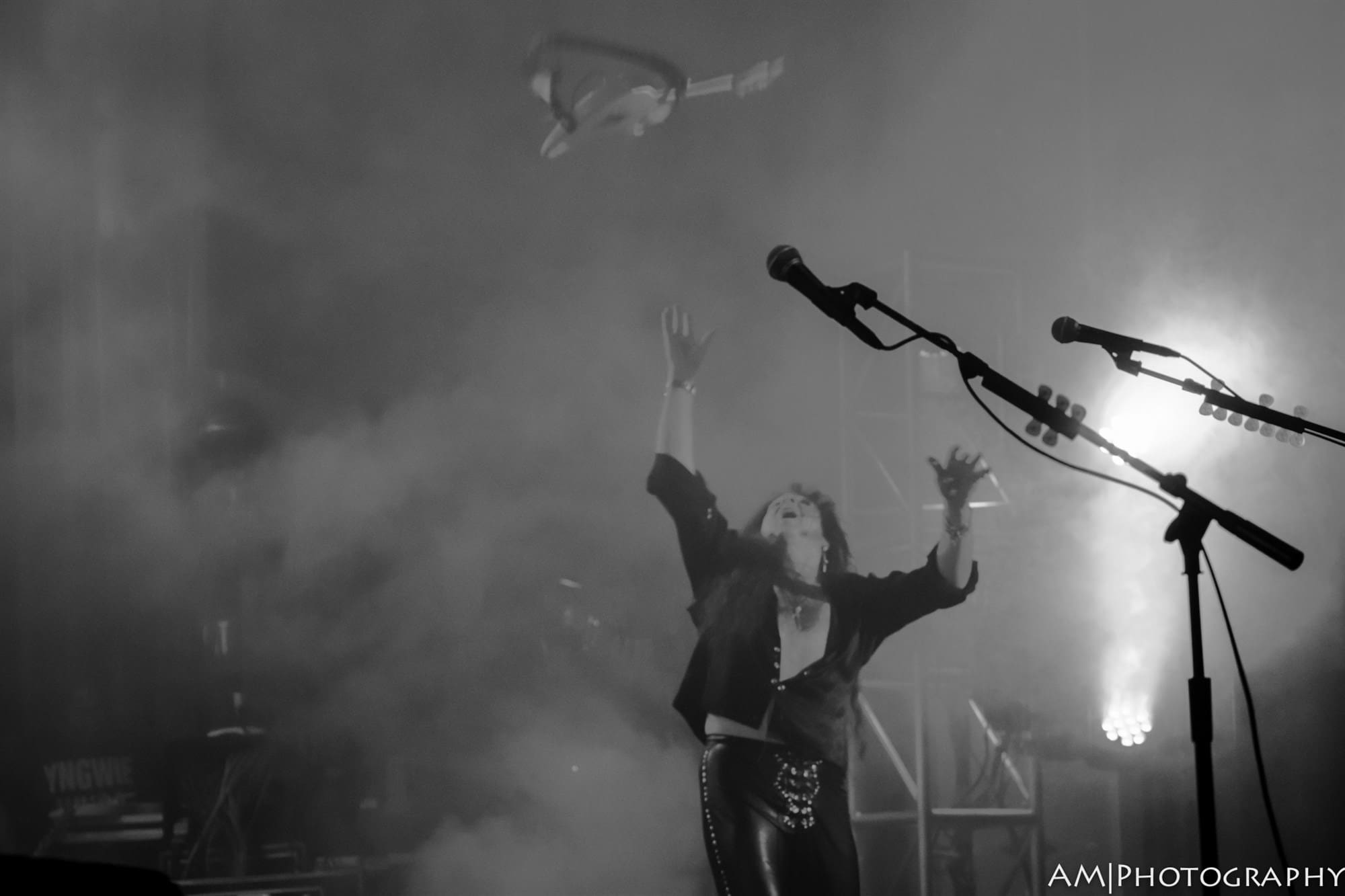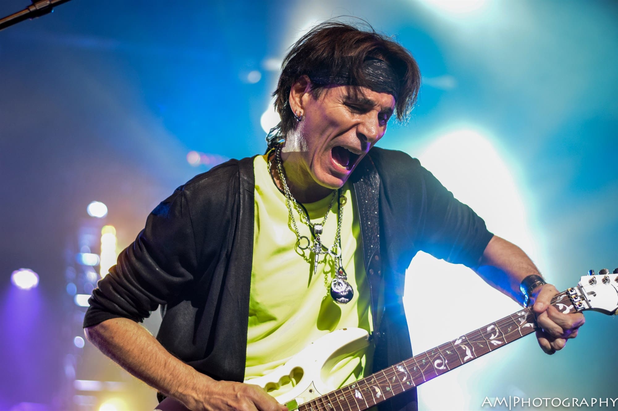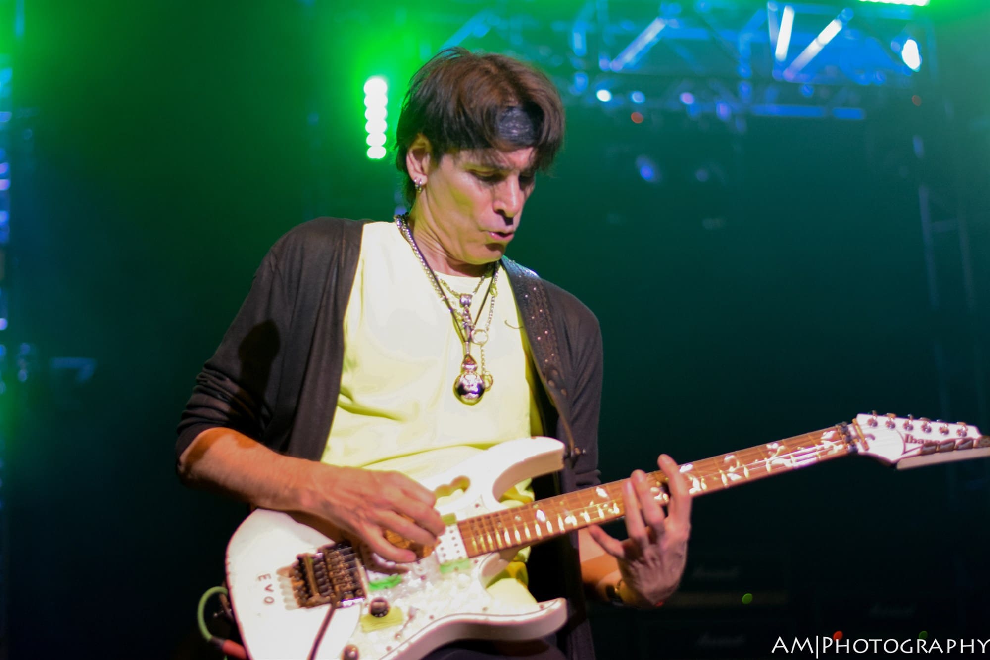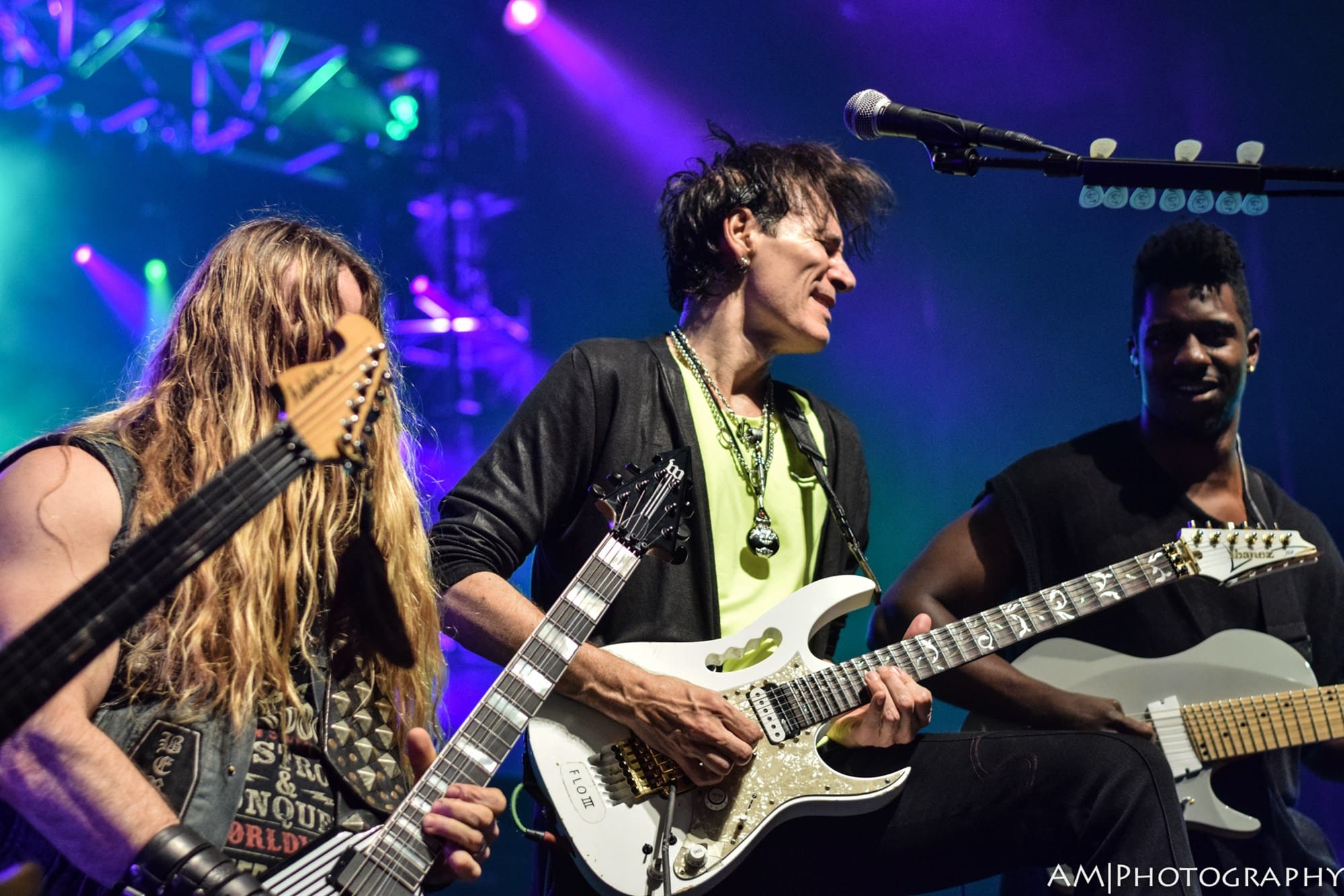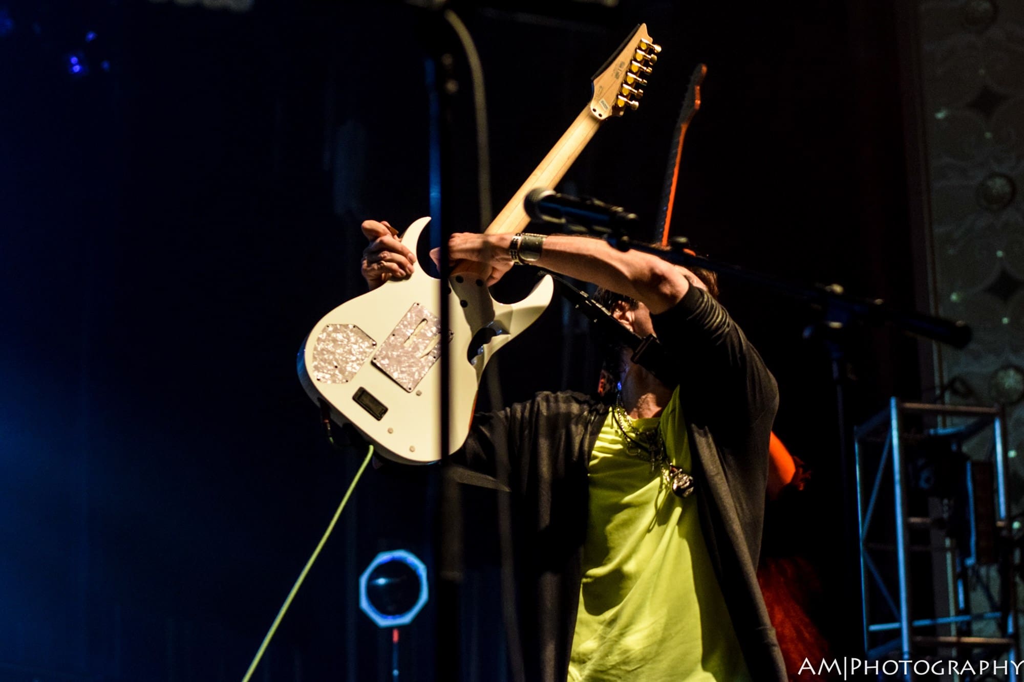Next up was Yngwie Malmsteen. Known for his blazing neo-classical style of guitar playing, Malmsteen put on a completely overwhelming display of talent and style. Wearing what might be the same pair of leather pants he bought in 1980, his guitar playing was rivaled only by his showmanship. Several guitar changes, more pick refills than I could count, spin moves, and guitar tosses all peppered his set, which was full of light-speed solos and riffs that would make even the most seasoned shredder give up the instrument. “Arpeggios from Hell” and a speedy rendition of the “Star Spangled Banner” were the standout parts of his set. Then around 10:30, Vai was invited on stage, and the main event had begun.