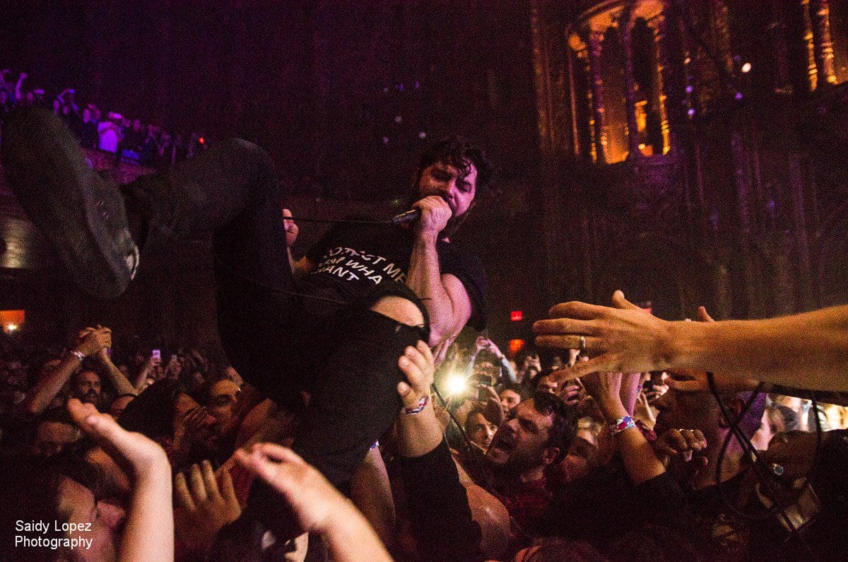 The band, which hails from Oxford, England, brought their big, high energy sound to New York. Lead singer and guitarist, Yannis Philippakis, who is known for jumping off venue balconies, could not do so at United Palace. So instead he ran through the crowd, and got the crowd (seated in their fancy velvet seats) off their feet to dance and jump. He also crowd surfed numerous times, and exhibited excellent showmanship through the band’s set.