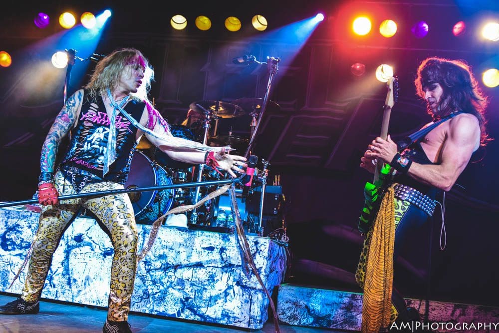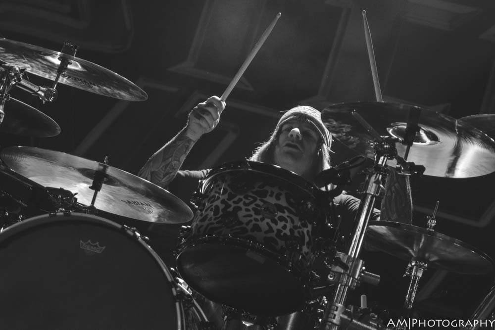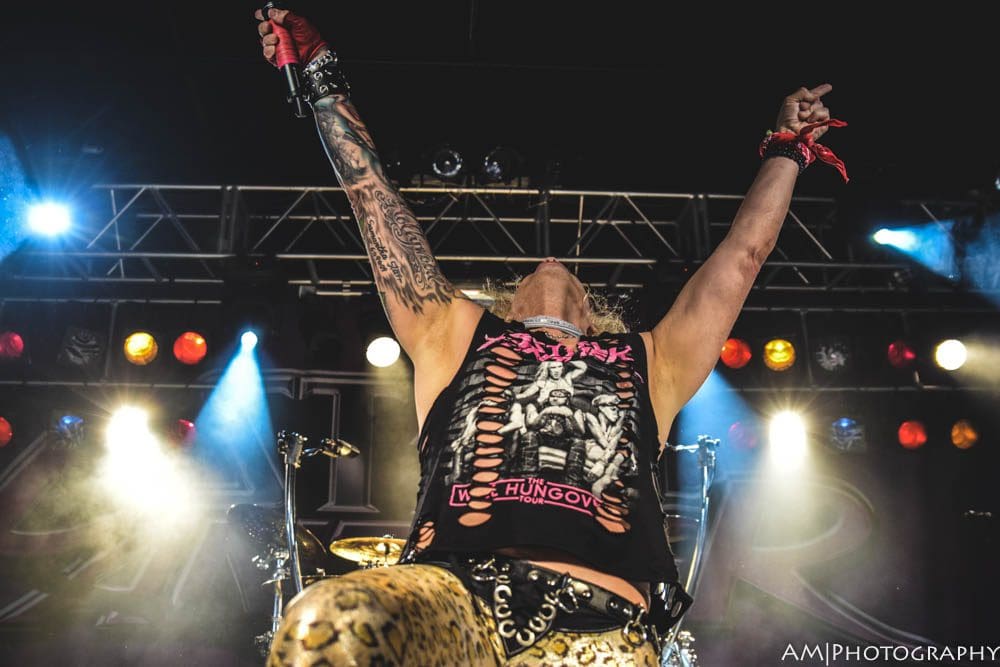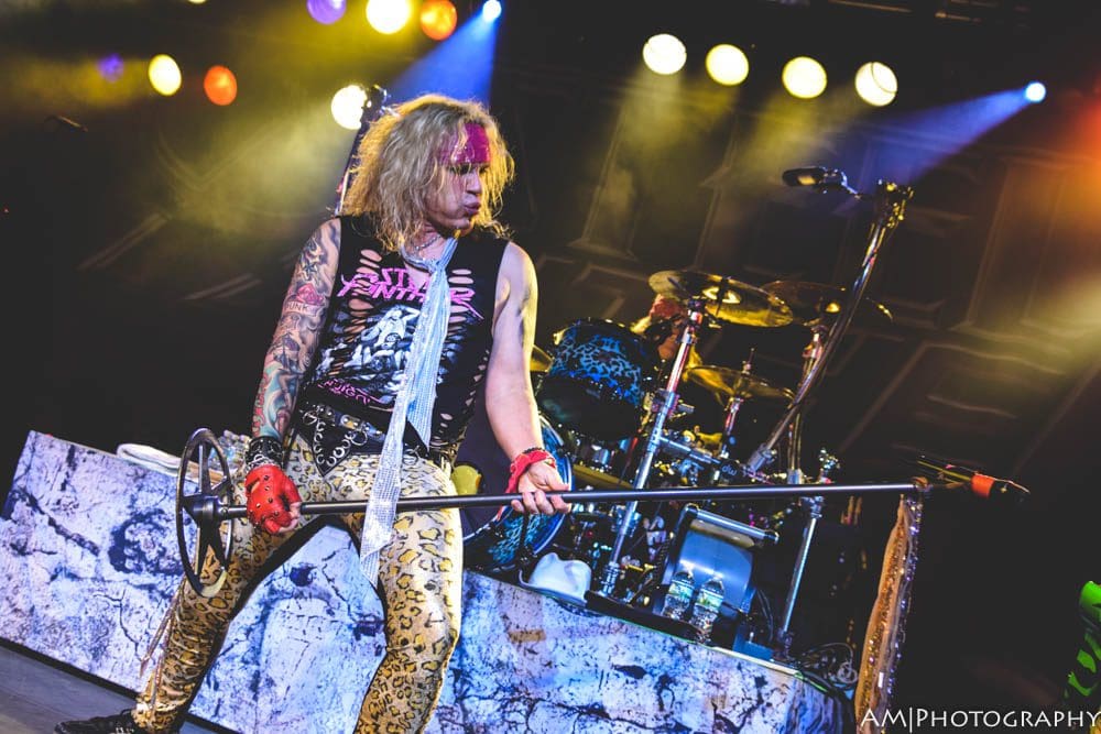 The main event started at 10:15, and Steel Panther mad sure to kick the show off with a bang. “Eyes of a Panther,” “Goin’ in the Backdoor,” and “Just like Tiger Woods” were the perfect songs to start the show, and really set the tempo for the rest of the set. Comprised of a mix of old and new songs, Steel Panther kept energy levels high all night. “Poontang Boomerang” sounded amazing live, which was followed by an updated solo from Satchel. Switching between shredding, staccato-delay riffage, and a one man guitar and drum portion, Satchel is without a doubt one of the best guitarists alive today.