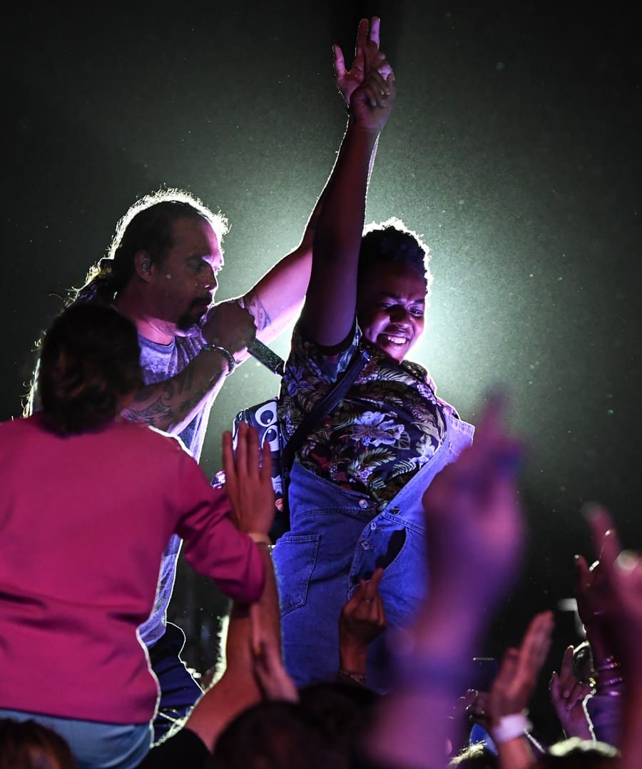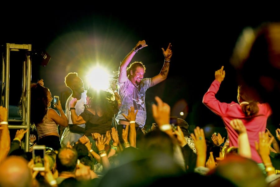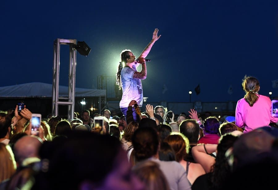 During the evening he took the Stone Pony Summer Stage for a crazy positive, and interactive show of reggae, soul, an hip hop. Front was documented in the crowd multiple times during his set dancing with the crowd. He also brought a number of children onstage to join in on the fun.