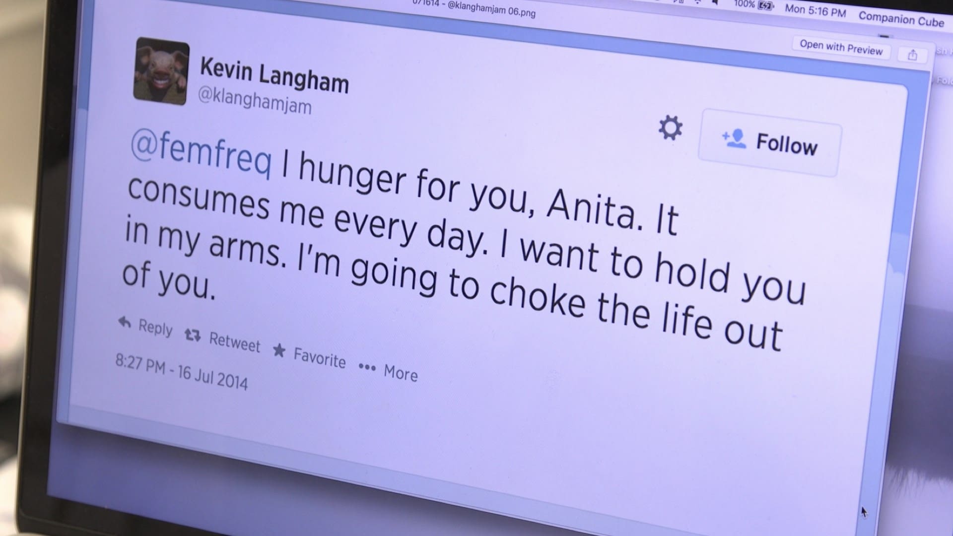 The first is lawyer Carrie Goldberg, who started a firm focusing on cyber harassment after her ex’s attacks made her realize how ill-equipped the legal system was to stop it. Next, is Tina Reine, a former Wall Street commodities trader whose reputation was so destroyed by the defamatory websites her ex posted it forced her to leave both the financial sector and New York City. Finally, there’s Anita Sarkeesian, creator and host of the web series Feminist Frequency, where her critiques of female representation in video games made her a target of the Gamergate crowd.