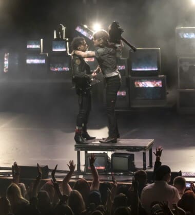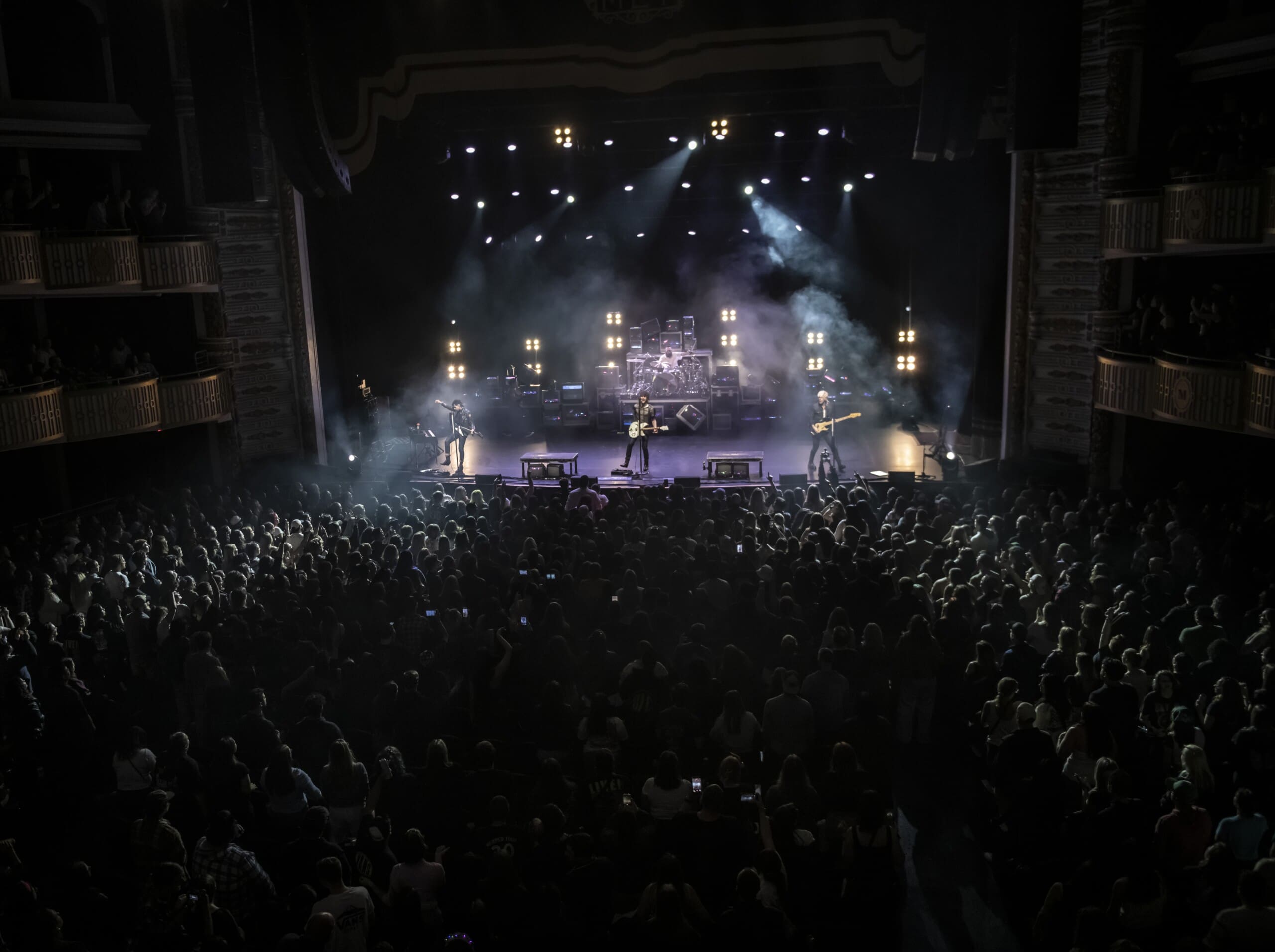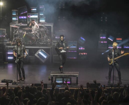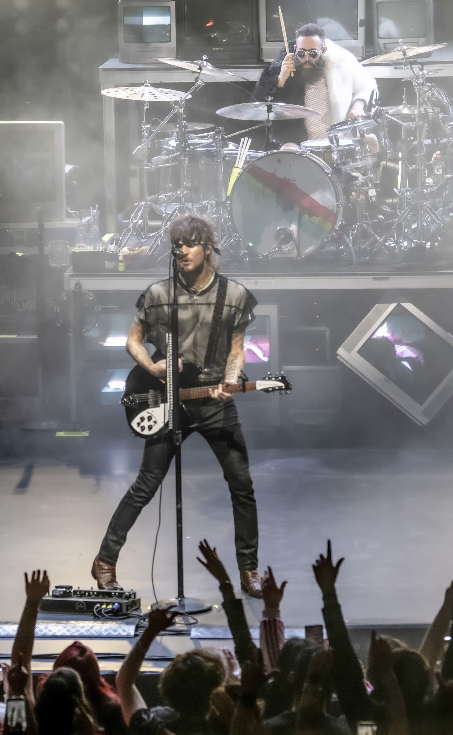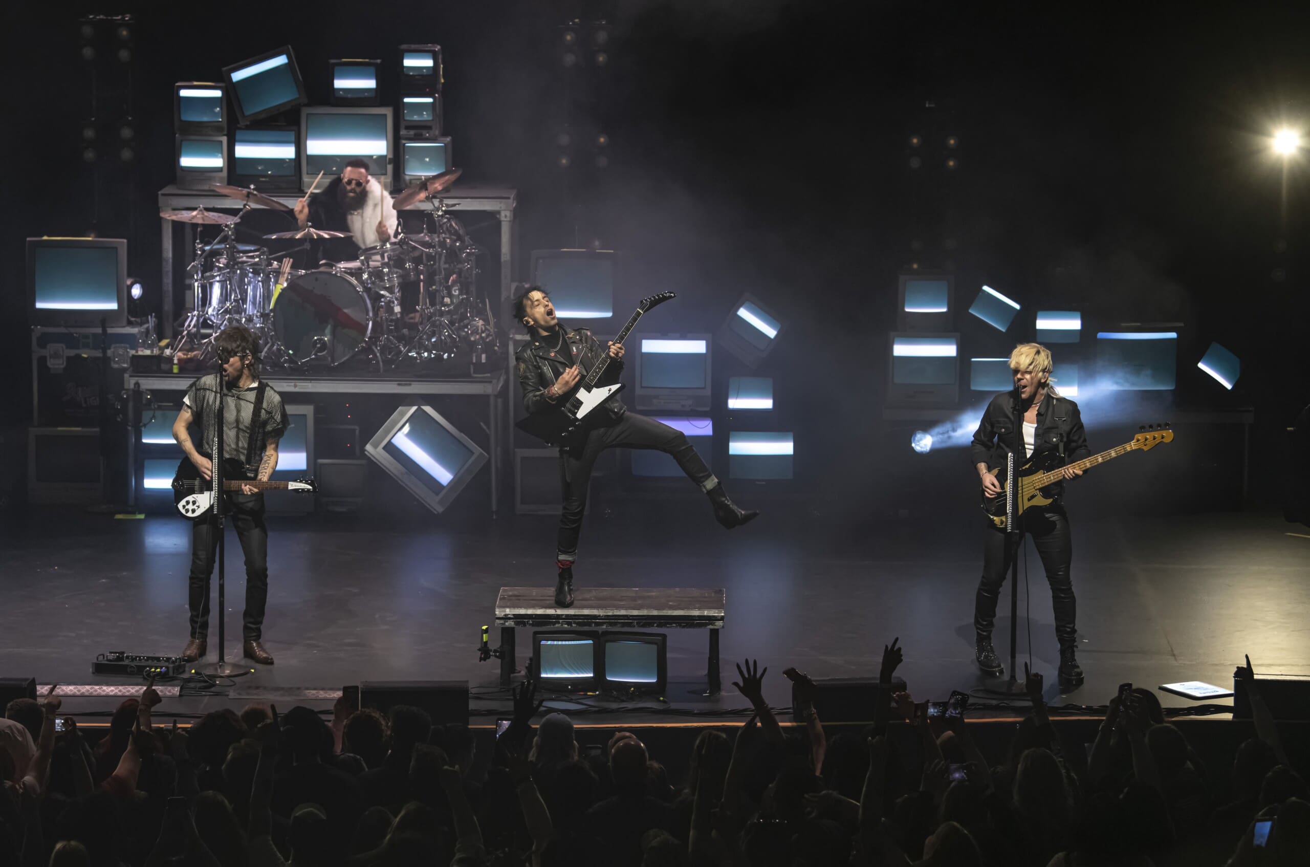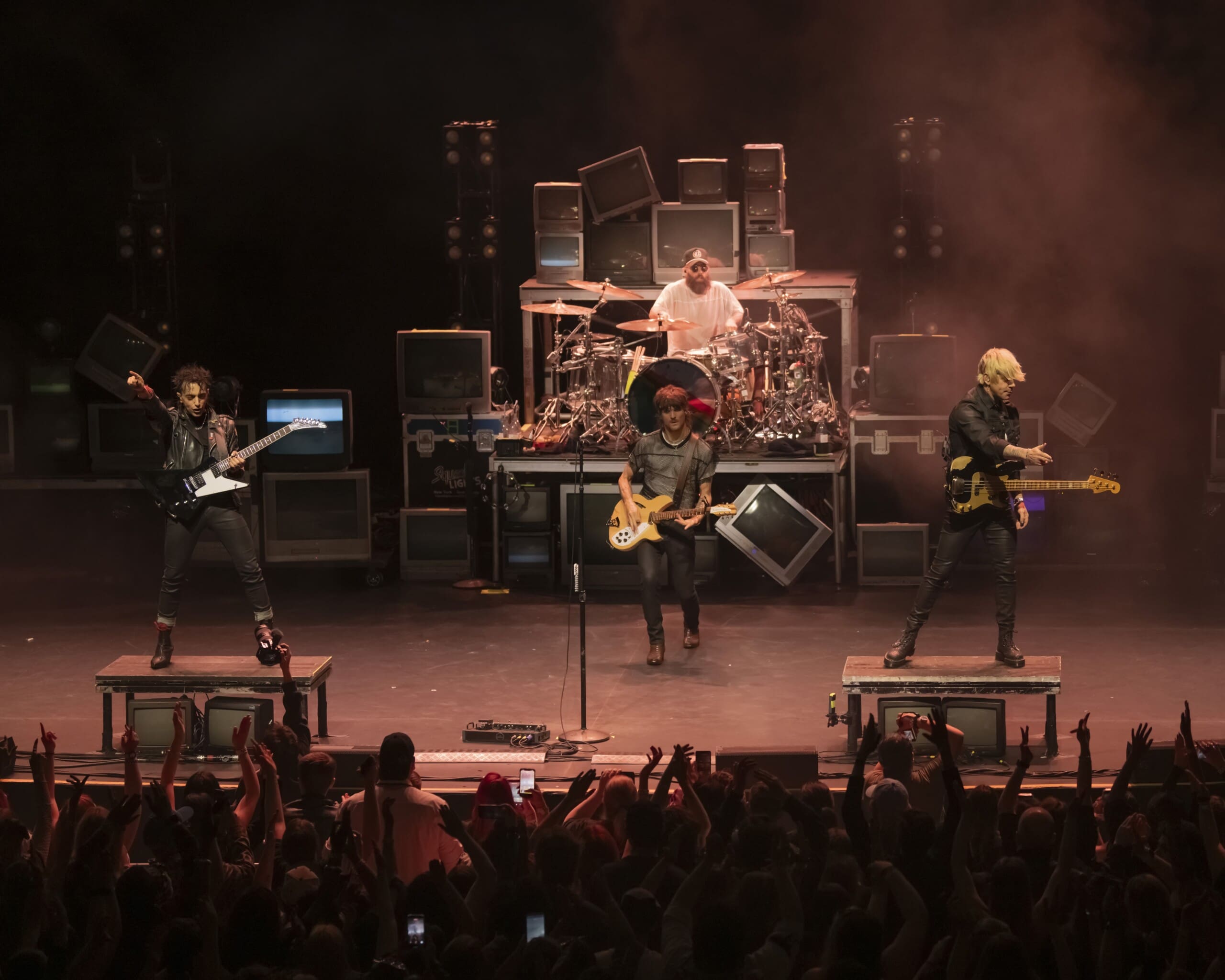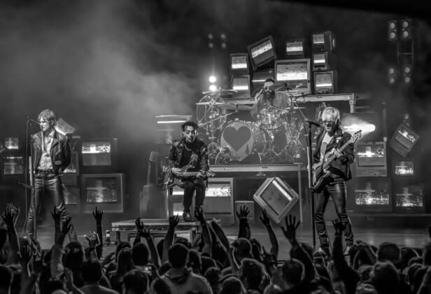 The stage set up featured a cool colorful retro-inspired look that had a huge wall of stacked CRT televisions which was inspired by the 90’s.The venue was packed. You could really feel the energy in the room and it was intense. They got the fog machine going and no doubt the fans were counting the seconds until the guys came out onto the hazy stage. When they did the place erupted. They opened with one of their most popular anthemic songs, “Love Drunk”, which normally would be an encore song. It was wild. Right off the bat there were hands in the air and loud singing. The vibe at the Met was incredible. The crowd was absolutely joyous and danced and swayed along during the night.